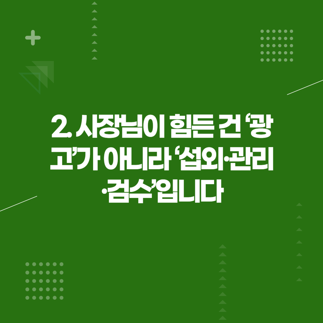 2. 사장님이 힘든 건 ‘광고’가 아니라 ‘섭외·관리·검수’입니다