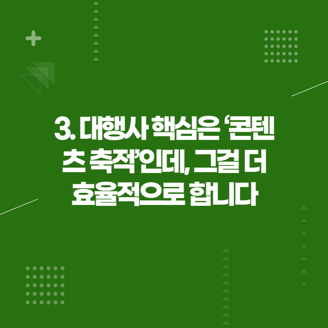 3. 대행사 핵심은 ‘콘텐츠 축적’인데, 그걸 더 효율적으로 합니다