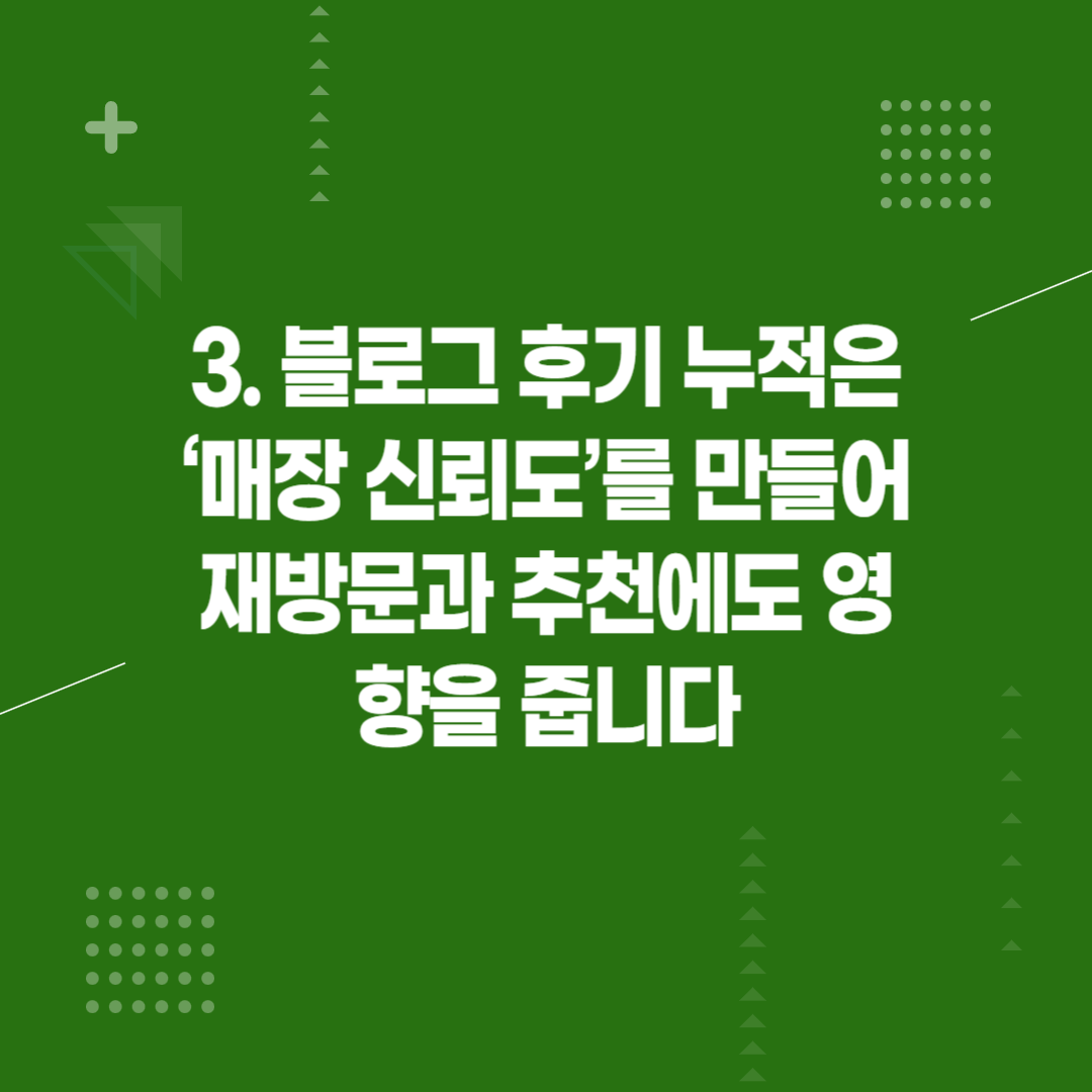 3. 블로그 후기 누적은 ‘매장 신뢰도’를 만들어 재방문과 추천에도 영향을 줍니다